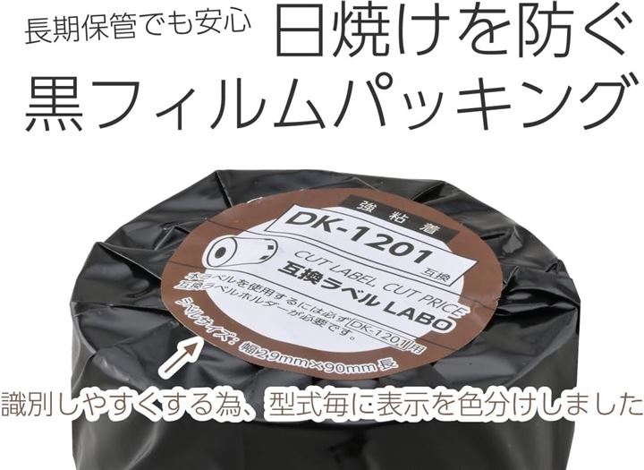 初めてご注文される方は、本ページ内にあるDK-1201互換ラベル専用ホルダーが必ず必要です。