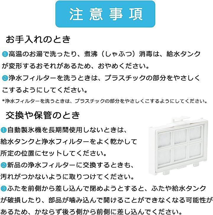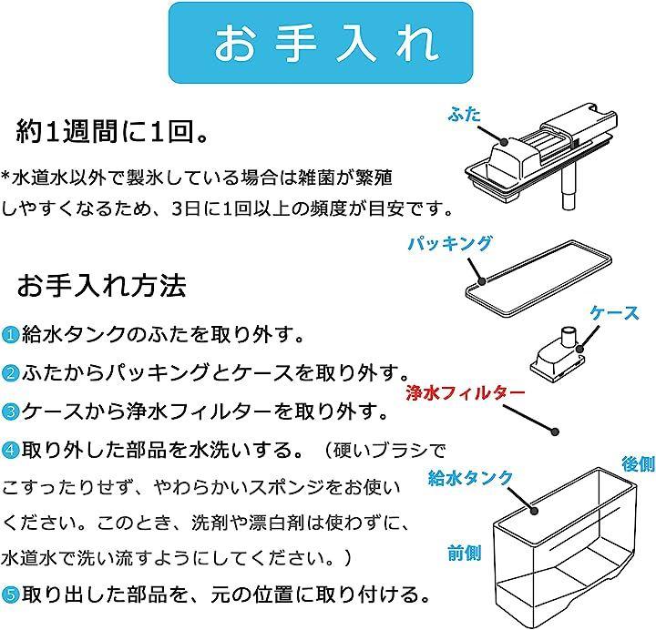 水道水以外で製氷している場合は雑菌が繁殖しやすくなるため、3日に1回以上の頻度が目安です。