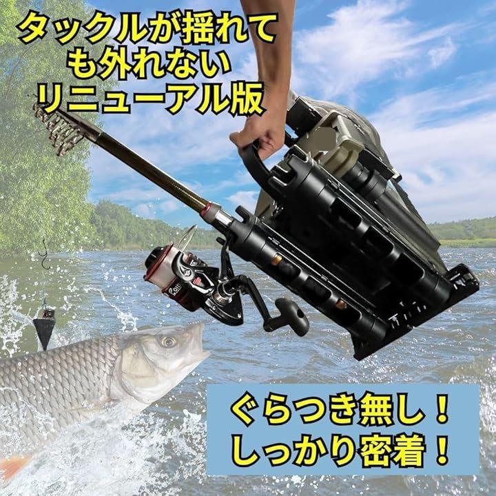 各種の釣竿やタックルボックスに対応している釣り竿のスタンド。