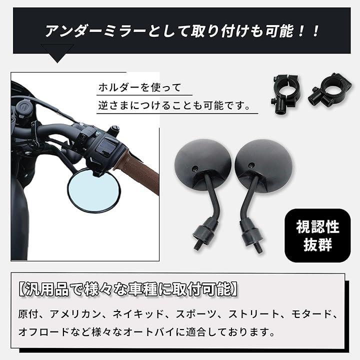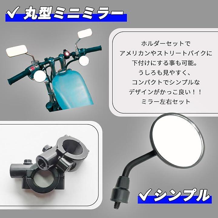 「丸型ミニ バックミラー」ホルダーセットでアメリカンやストリートバイクに下付けにする事も可能です。