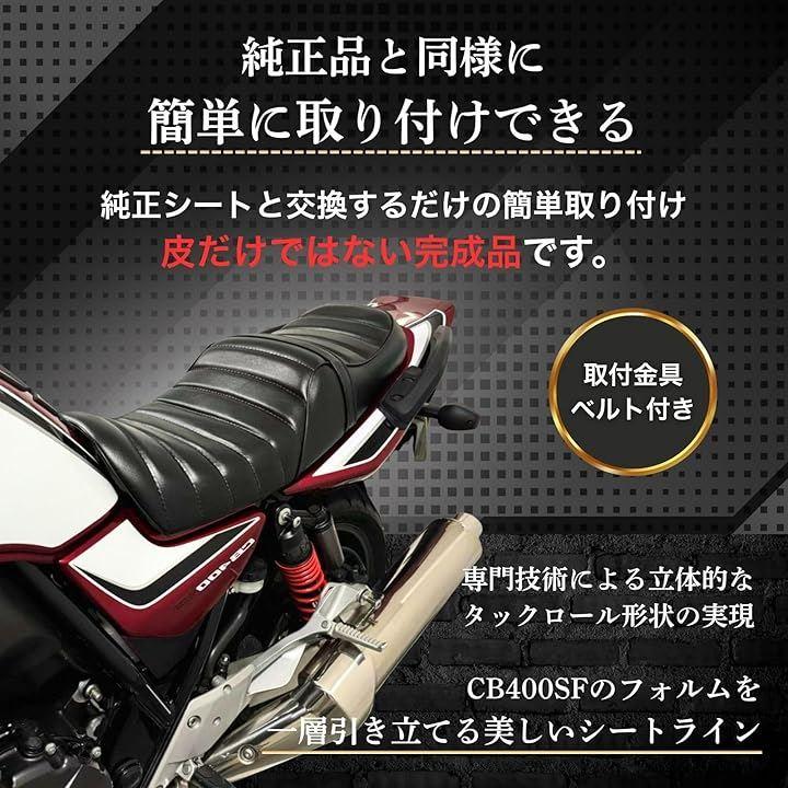 機能美を追求した、職人の技術が光るタックロールシート 熟練職人が長年の経験と技術を活かし、CB400SF専用に設計・製作。