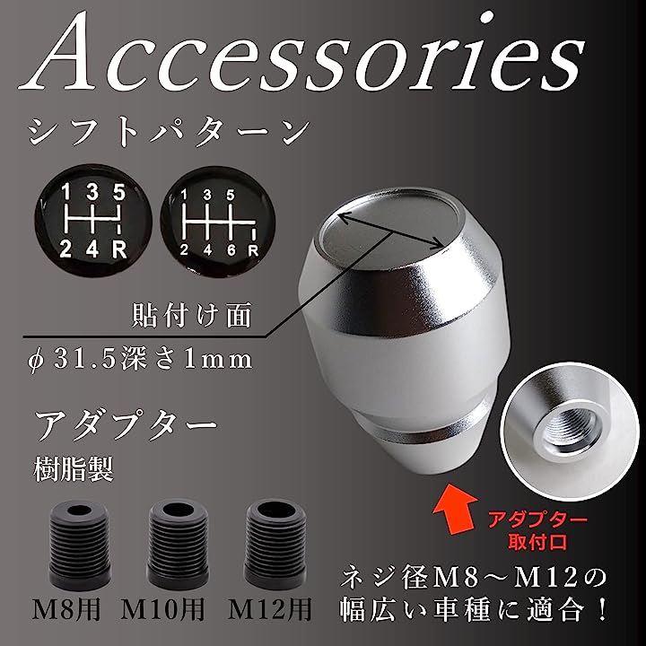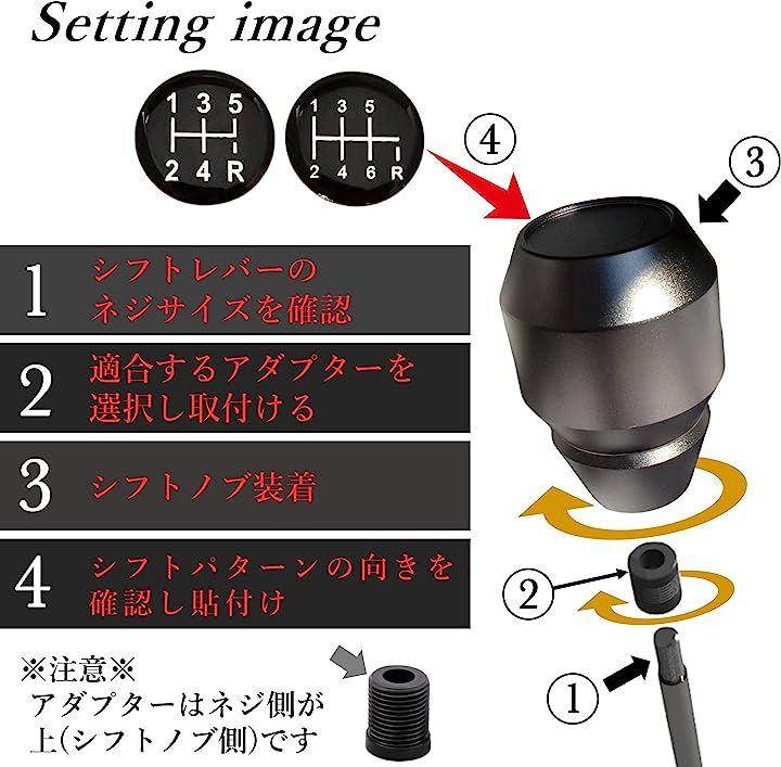 5速/6速MTのシフトパターンとM8、M10、M12アダプター付属で幅広い車種適合の汎用タイプです。