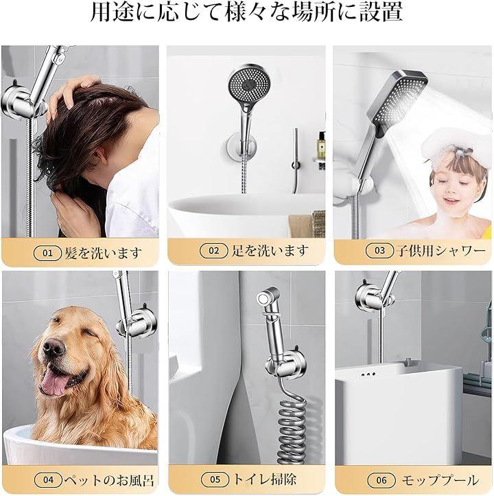 洗髪の高さ、お風呂の高さ、シンクの高さ、子供の高さ、ペットの高さ、トイレの高さに合わせてシャワーヘッドを設置できます。