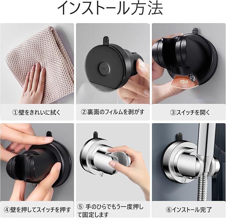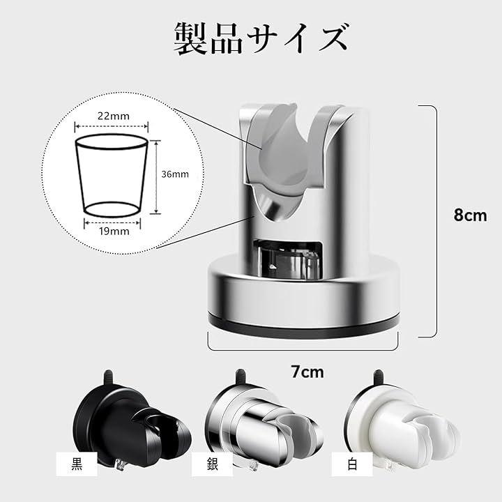 穴あけ不要・強力ナノ真空吸盤: このシャワーホルダー吸盤は穴を開ける必要がなく、取り付けが簡単で、高強度の真空吸盤デザインを採用し、陶器、ガラス、光沢のある金属などの滑らかな表面にしっかりと吸着し、迅速に取り付けが可能で、壁を傷めることがありません。