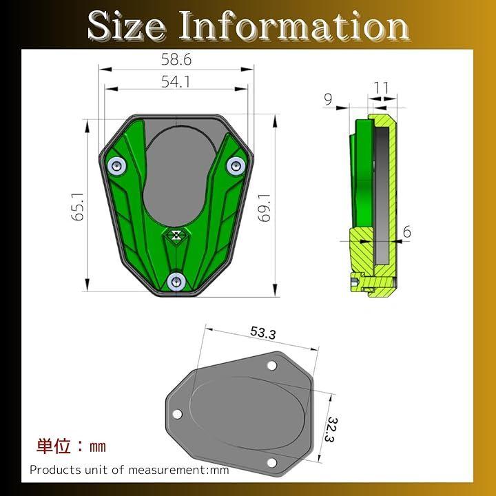 「製品」サイドスタンドプレートは高品質で耐久性の高いアルミニウムで作られています。