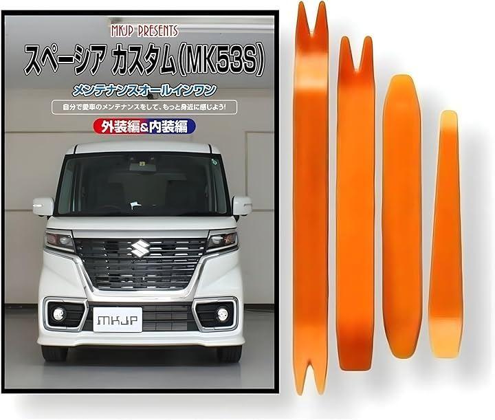 スペーシア カスタム MK53S メンテナンスオールインワンDVD 内装・外装セット ・ルームランプ交換方法、ライト交換方法・ フロント(リア)バンパー交換方法・内張り交換方法などなど、スペーシア カスタム MK53S の 各種パーツの取外し方法や取付け方法、改造やチューニングを解説したDVD。