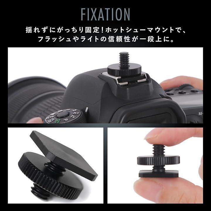 「プロフェッショナル仕様のホットシューアダプターで機材を固定」 あなたの撮影を支える「安定感」 撮影現場で機材の安定性が失われると、瞬間を逃してしまうことがあります。