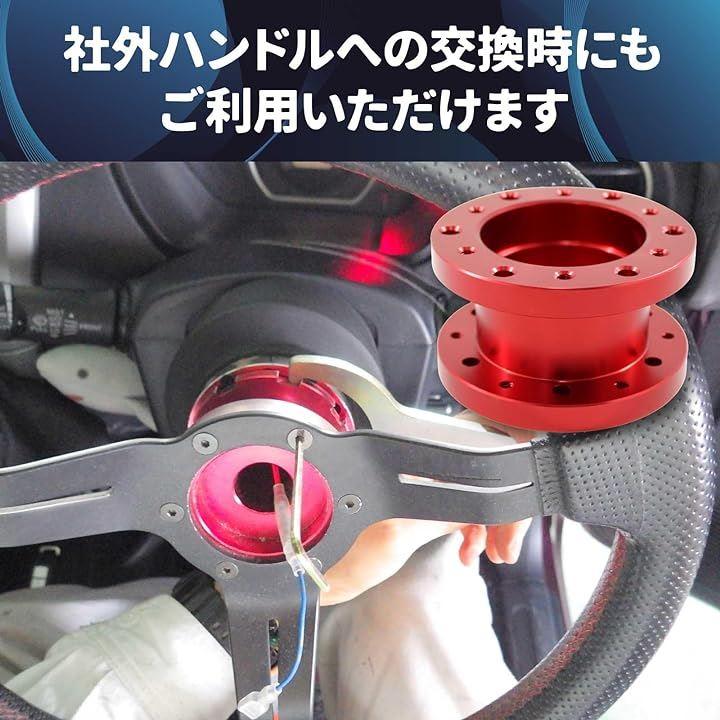 「快適な運転を支えるステアリングボススペーサー」アルミ製で、個人の運転ポジションに合わせてステアリング位置を微調整。