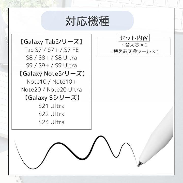 Galaxy Tab S7/S8/S9、Note10/Note20、S22/S23 Ultraなどのスタイラスペンに対応し、ペン先の劣化時や予備としても便利です。