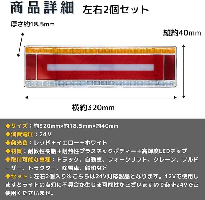 消費電圧は24V(12V兼用)で、発光色はレッド、イエロー、ホワイトです。