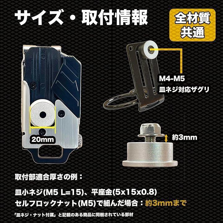 お好きな工具や道具袋が市販のワンタッチ工具ホルダーやコンベックスホルダーに脱着可能に。腰道具カスタム用オリジナル金具です。