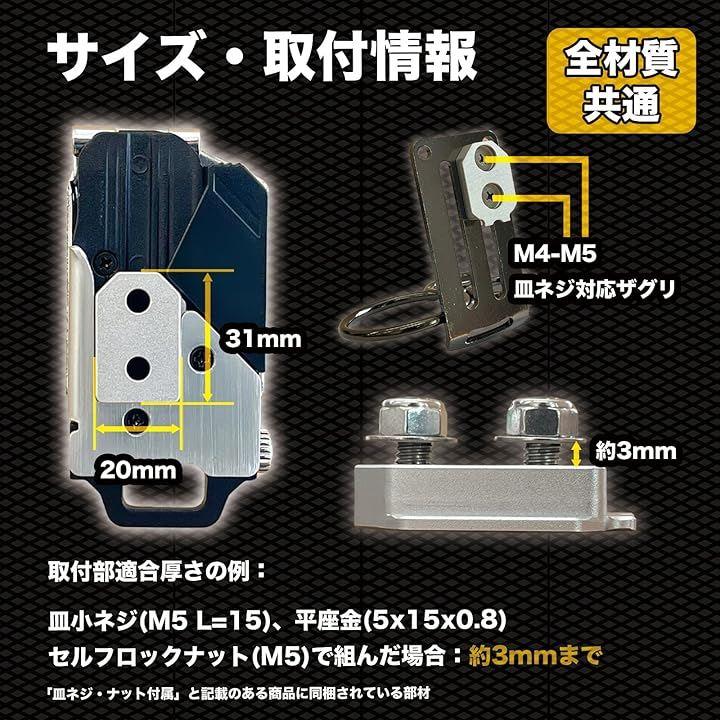 お好きな工具や道具袋が市販のワンタッチ工具ホルダーやコンベックスホルダーに脱着可能に。腰道具カスタム用オリジナル金具です。