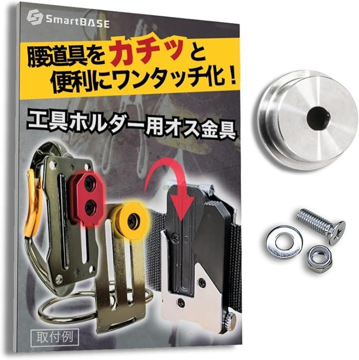 お好きな工具や道具袋が市販のワンタッチ工具ホルダーやコンベックスホルダーに脱着可能に。腰道具カスタム用オリジナル金具です。