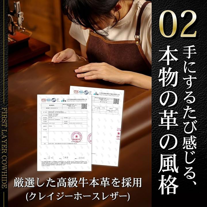 「厳選した高級牛革を採用」 クレイジーホースレザーを採用し、至極の手触りとぬくもりを手に入れることができます。