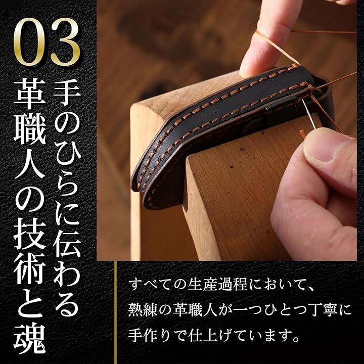 「厳選した高級牛革を採用」 クレイジーホースレザーを採用し、至極の手触りとぬくもりを手に入れることができます。