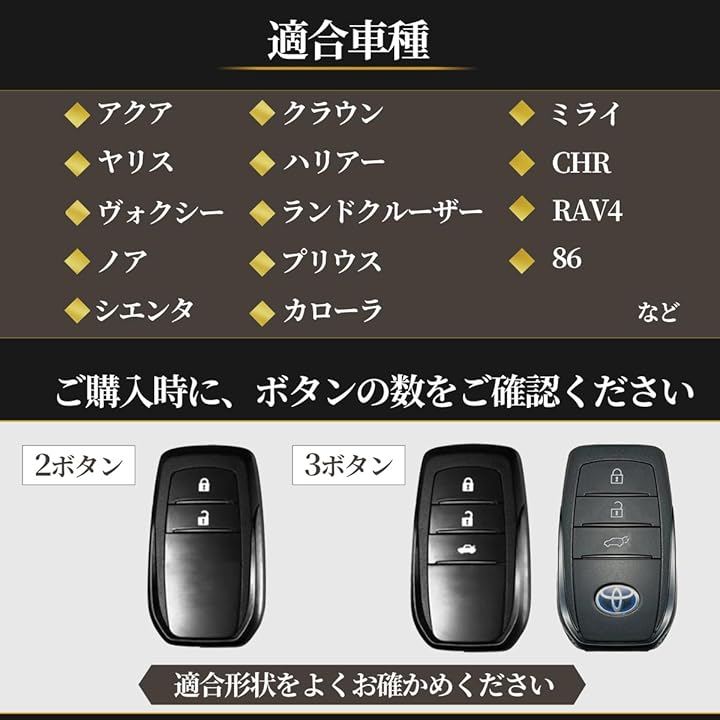 「適合車種」 ランドクルーザー200系 / ランドクルーザー300系 / ヤリス クロス / カローラ クロス / 新型ハリアー 80系 MXUA80 / MXUA85 / AXUH80 / AXUH85 / ハイラックス GUN125 / トヨタ ミライ MIRAI / MARK X マークX 250G Sパッケージ / 新型 ランクル300系 / ランクル250系 / クラウン クロスオーバー / 新型クラウン (Crown Crossover) / ヤリス(YARIS) / GRヤリス / 新型アクア Aqua MXPK10系 / カローラスポーツ corolla sport / 新型カローラ / カローラツーリング 17系・215系・219系 / 新型プリウス(PRIUS) 60系 65系等、スマートキー形状が一致する商品であれば適応可能です。
