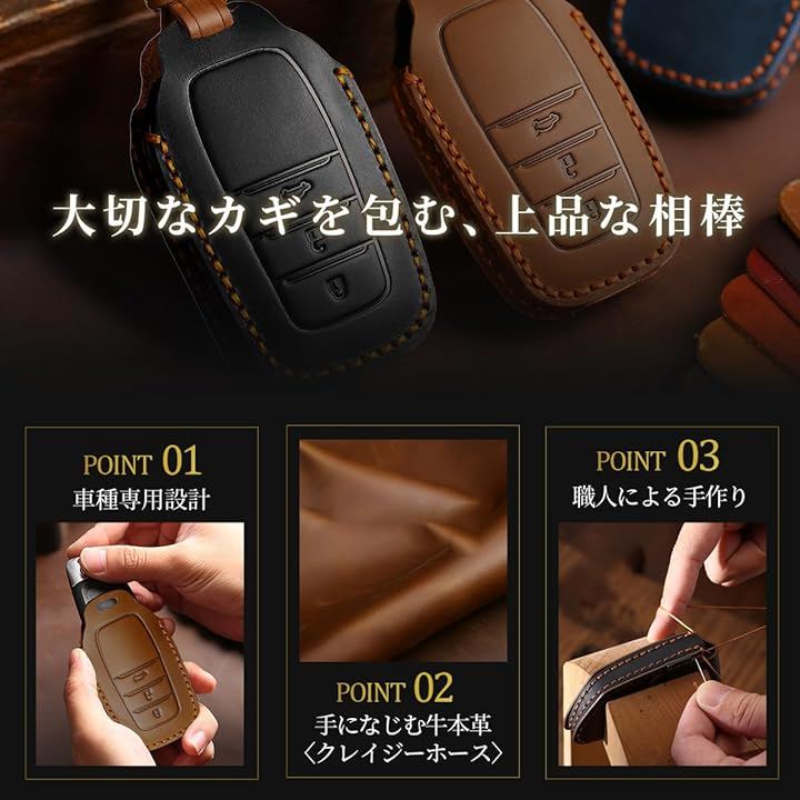 「商品概要」 トヨタ向けの牛本革のスマートキー専用キーケースです。