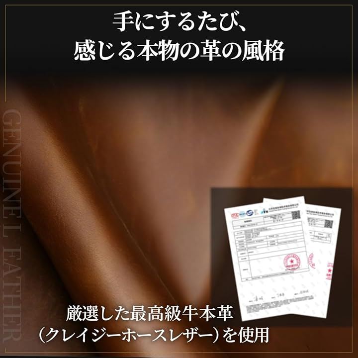「厳選した高級牛革を採用」 高品質なクレイジーホースレザーを採用しています。