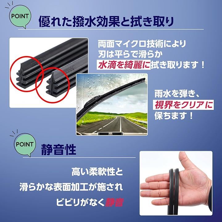 幅6mmのロック無しタイプで、空力ワイパーフレームや従来型フレームなど、多様な車種に適合する汎用性が特徴です 。