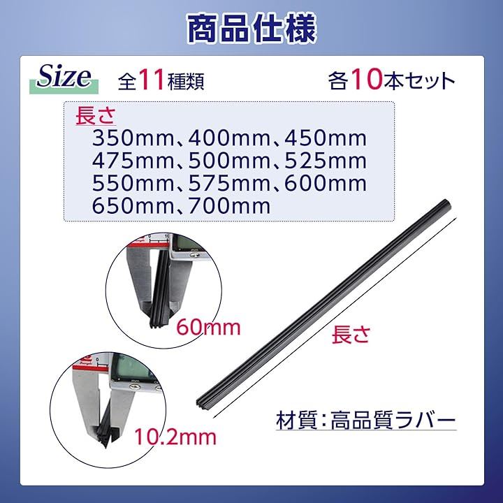 パッケージ内容:1セットあたりワイパーゴム10本入り
