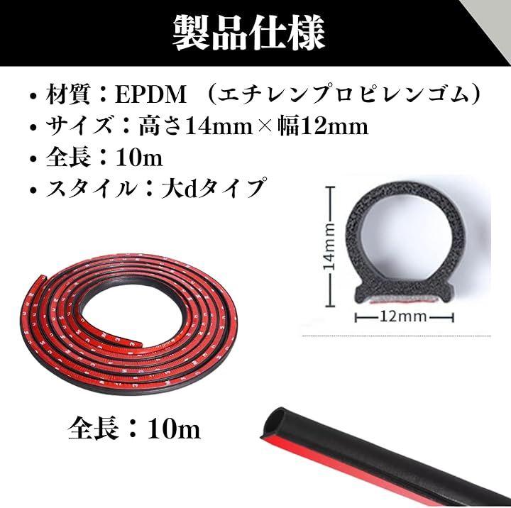 「製品仕様」*材質:EPDM (エチレンプロピレンゴム) *サイズ:高さ14mmx幅12mm *全長:10m *スタイル:大Dタイプ