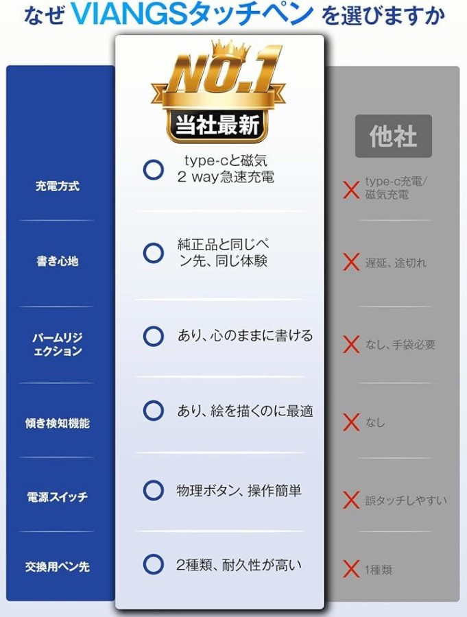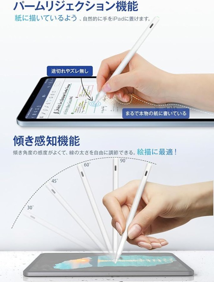 「パームリジェクション搭載|傾き検知対応」Viangsのipad タッチペンは、スムーズな描き心地と優れた反応性を実現。