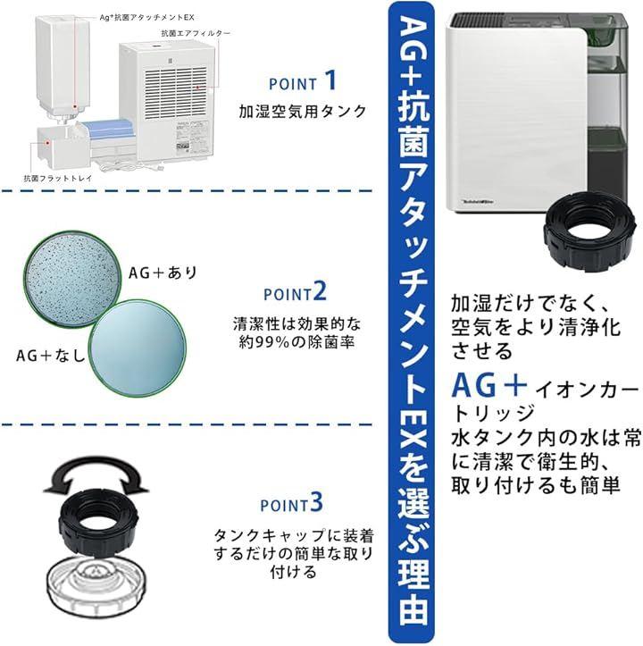 加湿される水分をより清浄化させ、特にAg+抗菌アタッチメントExプラズマ放電により、自然界と同じイオンを放出し、細菌や微生物の吸い取りをより効率的になります。