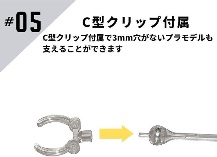 プラモデルや模型、フィギュアなどが転倒しないように支える為のスタンドです。