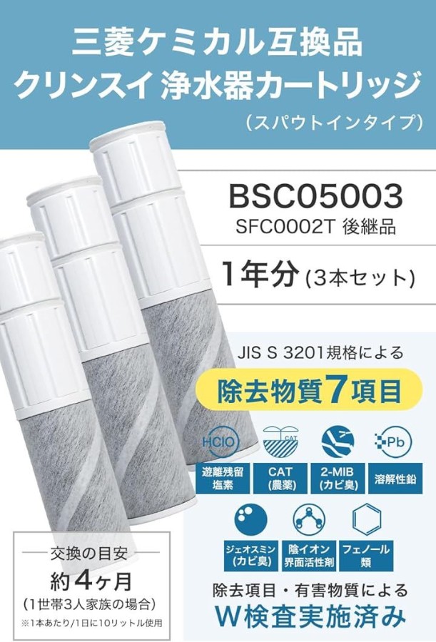「対応商品」 スパウトインタイプ 浄水器(水栓一体型)交換用 浄水カートリッジ BSC05003 / SFC0002T に互換性のある商品(*純正品ではなく互換品です)