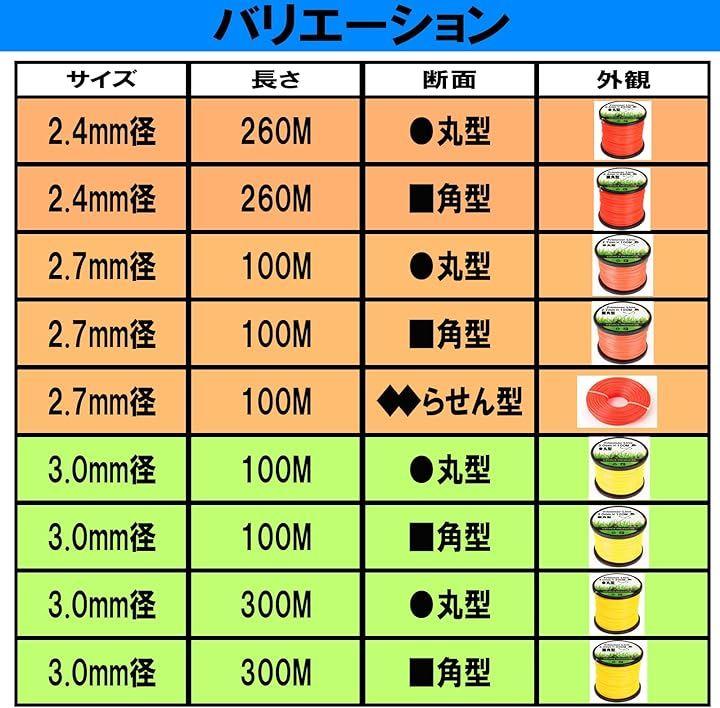 バリエーション 2.4mm径 四角型 260M 2.4mm径 丸型 260M 2.7mm径 四角型 100M 2.7mm径 丸型 100M 2.7mm径 らせん型 100M 3.0mm径 四角型 100M 3.0mm径 丸型 100M 3.0mm径 四角型 300M 3.0mm径 丸型 300M