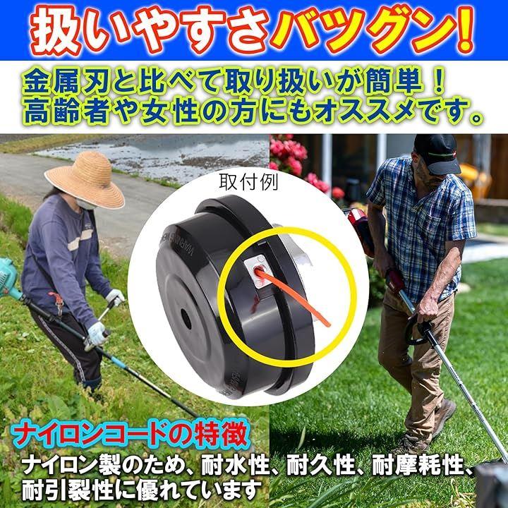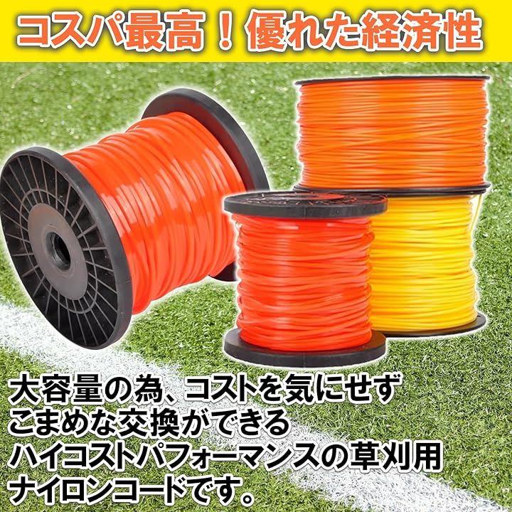「コスパ抜群」:大容量の為、コストを気にせずこまめに交換できるハイコストパフォーマンスの草刈り用ナイロンコードです。