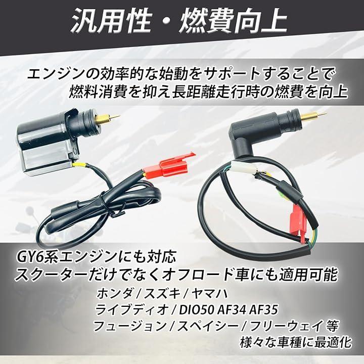 「高性能オートチョーク」手動式及びオートチョークは、ホンダやスズキ、ヤマハのライブディオやDIO50 AF34 AF35、フュージョン、スペイシー、フリーウェイなどのスクーターに最適化されており、エンジン始動時のスムーズな動作を実現します。