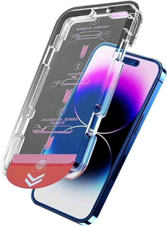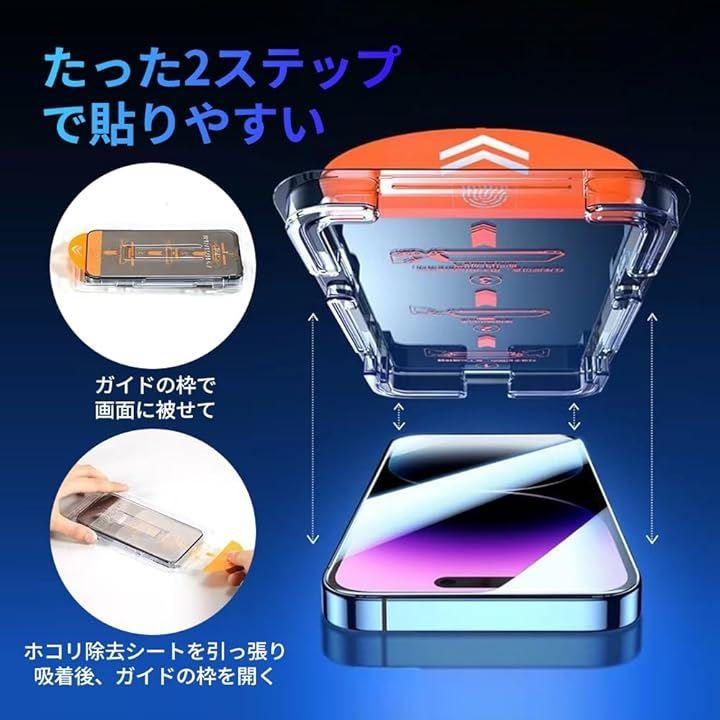 「0秒失敗の革命設計x2枚セット」 業界初の自動位置合わせガイド枠を採用し、ホコリ除去ストリップ付きで気泡ゼロの1秒貼り付けを実現。