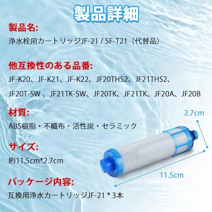 「商品仕樣・3個入」形名:JF-21-T / SF-T21(代替品)交換用浄水カートリッジ。