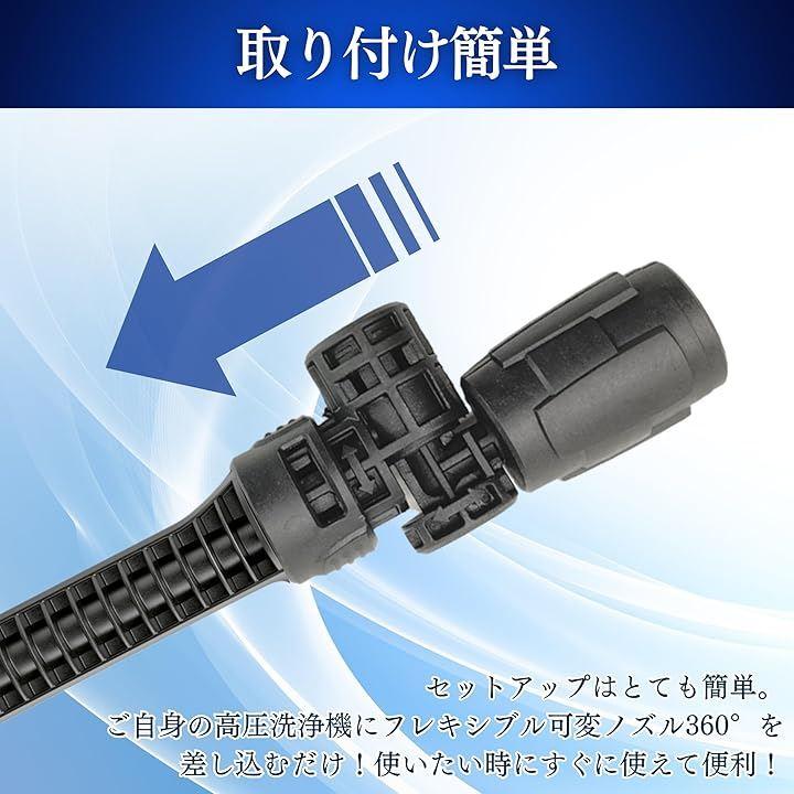 「360°回転可能なデザイン」あらゆる角度にカンタン調整。フレキシブル可変ノズルは狭い隙間や複雑な形状の場所も簡単に洗浄可能。