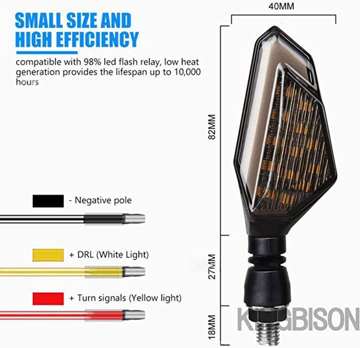 ・「商品概要」スタイリッシュなデザインで様々な車種のバイクに合わせやすいポジションランプ(デイライト)搭載の汎用LEDウインカー。