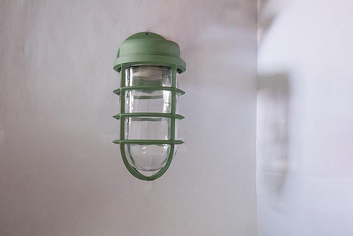 船舶の灯り 厚いガラスのグローブに、金属製のカバーが付いたランプ。
