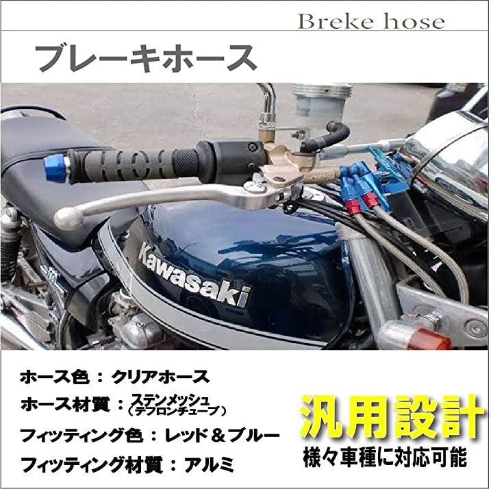 ホース色:クリアホース ホース材質:ステンメッシュ(テフロンチューブ) フィッティング色:レッド&ブルー フィッティング材質:アルミ タイプ:汎用ホースブレーキホースとは、ブレーキフリュードをマスターシリンダーからブレーキキャリパーまで通すホースのことを言います。