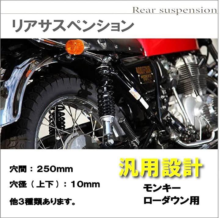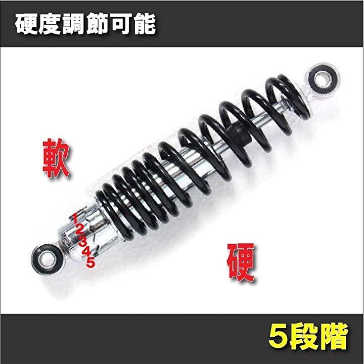 ・「仕様」・全長 約270mm ・穴間 250mm ・穴径 上穴 10mm 下穴 10mm ・ショックアブソーバー 5段階調整可能 ・スプリング径 約6.3mm *取り扱説明書 等は付属しておりませんので、取り付けに不安のある方は専門の業者様にご依頼いただければと思います。