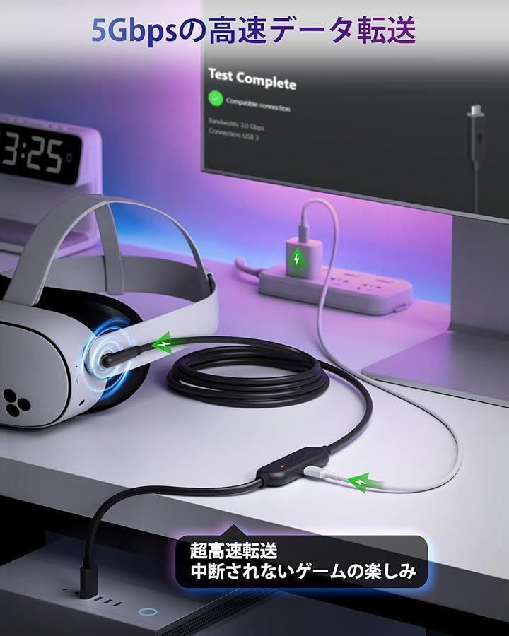 「Quest 3S/3/2/Pico4と互換性あり」このリンクケーブルはVRデバイスをゲーミングPCに接続し、優れたPC VRゲーム体験を提供します。