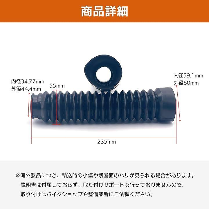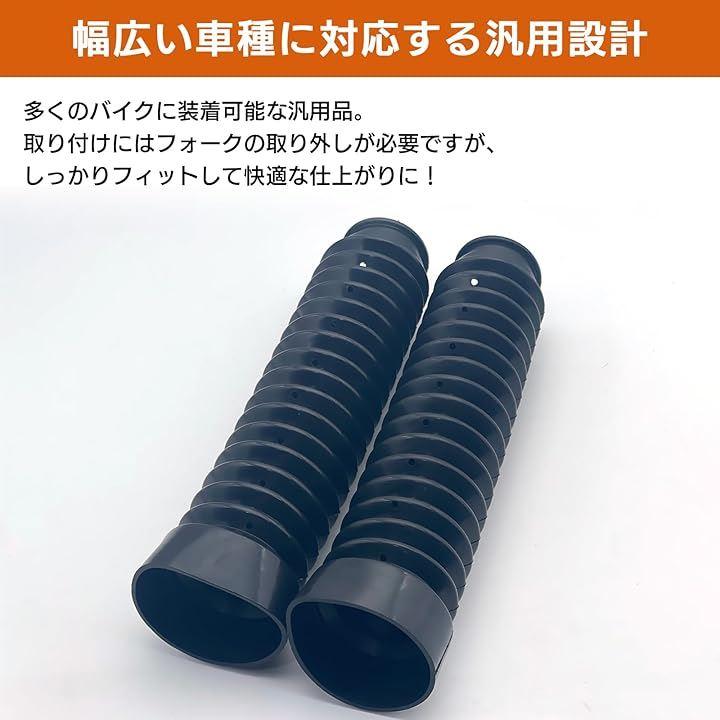 バイク用フロントフォークブーツは、汎用品として幅広い車種に対応し、フロントフォークの保護や傷隠しに最適なアイテムです。