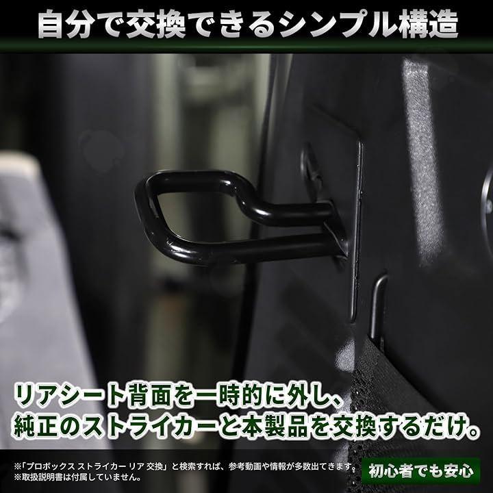 リアシート背面を一時的に外し、純正のストライカーと本製品を交換するだけ。
