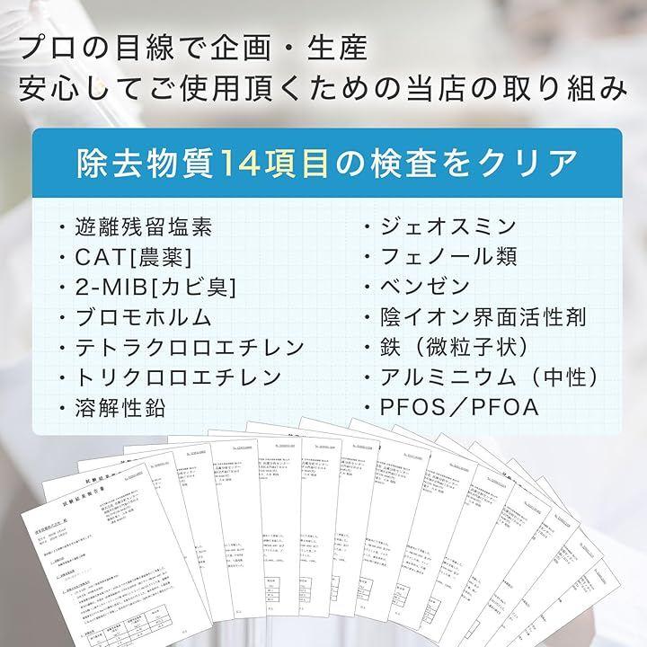 (一部パッケージには除去項目の反映、記載がございませんが、浄水能力は間違いなく試験にて14項目確認済みですのでご安心下さい。