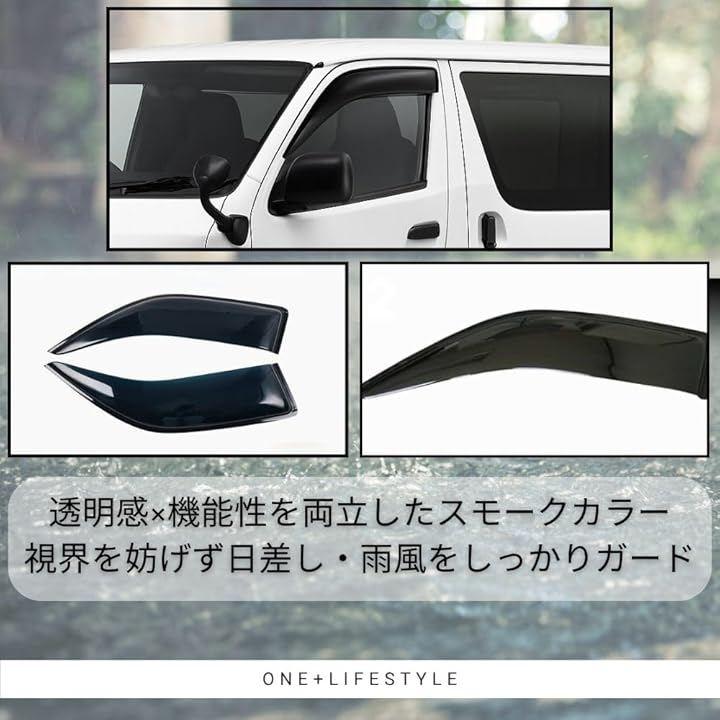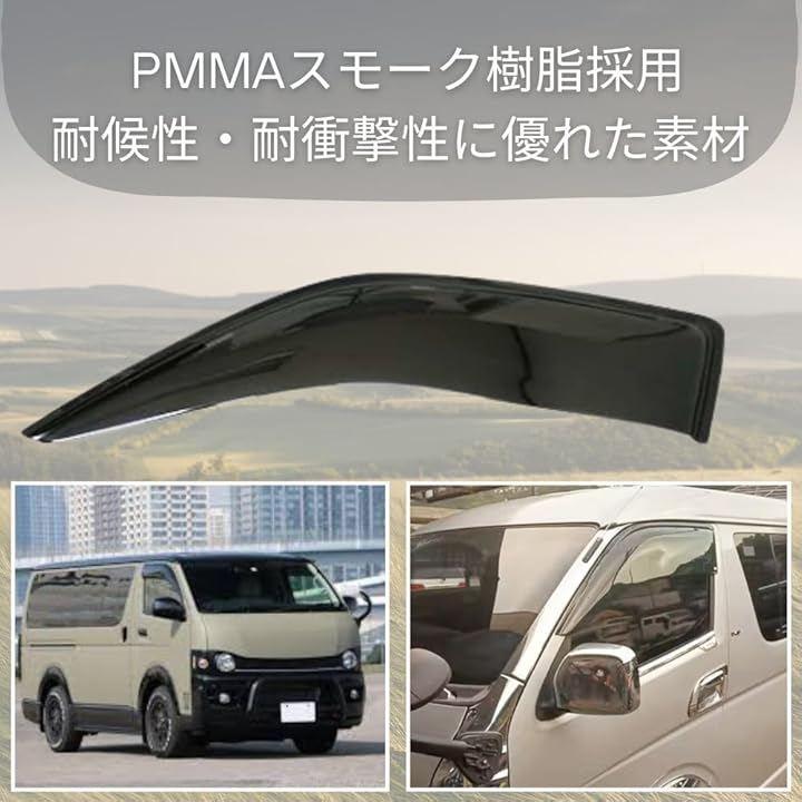 「専用設計」200系ハイエース・レジアスエース(1型~7型)の標準・ワイドボディ・ハイルーフ車に対応したドアバイザー。