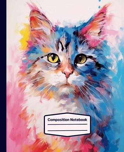 Composition Notebook: Wide Ruled 120 pages, 7.5" x 9.25", Abstract painting, a picture cover of a cat