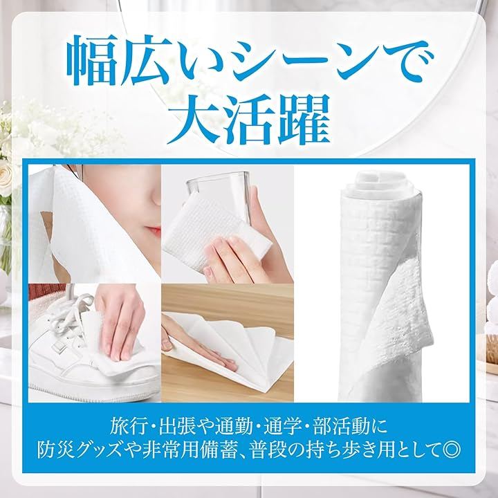 「幅広いシーンで大活躍」旅行・出張に/通勤・通学・部活動に/防災グッズや非常用備蓄に/キャンプやアウトドアに/ジム・サウナ・スポーツ後に/機内持ち込みや海外旅行に/普段の持ち歩き用として。
