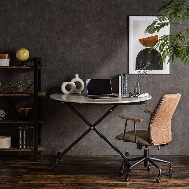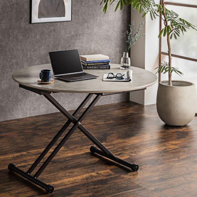 ●低くしてリビングテーブルとして置き、来客の際に広げたり●高くして円状のダイニングテーブルとして使用したり●片側だけ広げて壁付けしておいてサイドで使用したり
