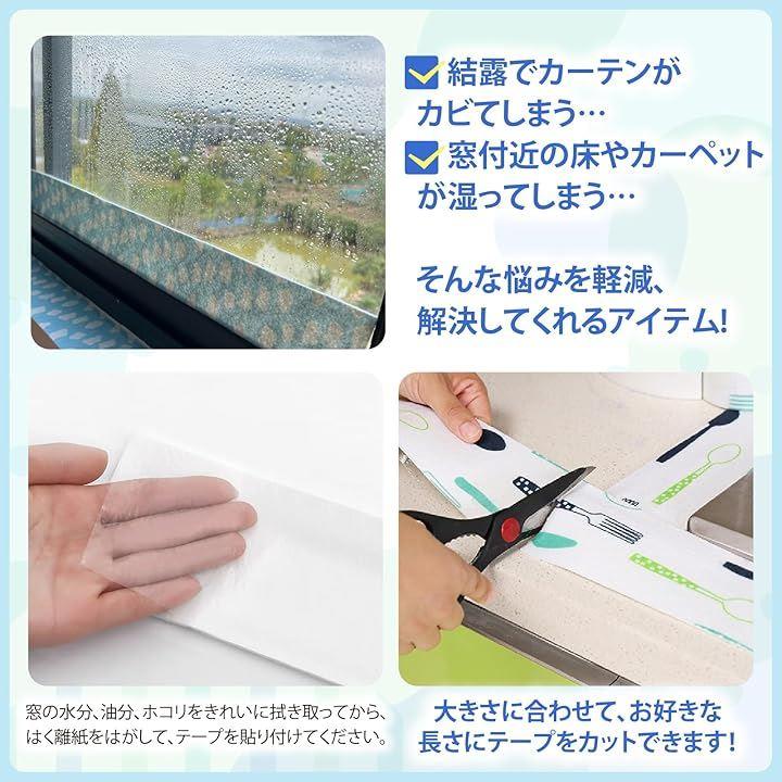 かわいいデザインの結露防止テープは、吸水力もあり。結露でカーテンがカビてしまう…もしくは、窓付近の床やカーペットが湿ってしまう…そんな悩みを軽減、解決してくれるアイテムです。