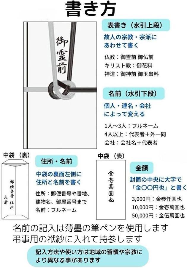 短冊が付属しておりますが香典袋に直接記入していただいても問題ないです。