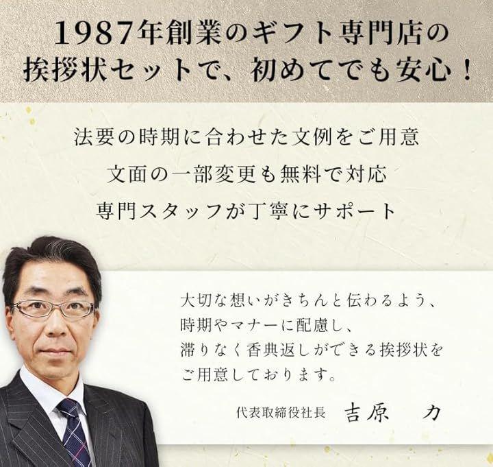 「創業35年、香典返し実績5万件以上の贈り物専門店がご用意する挨拶状」地元新潟で選ばれ続けて35年。